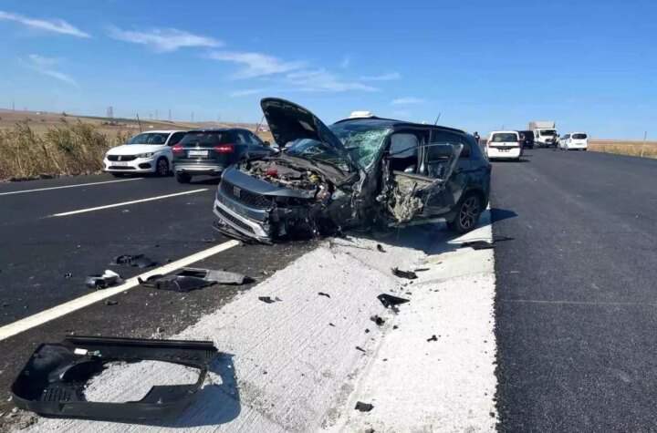 Çorlu ilçesinde yol çalışması nedeniyle tek şeride düşen yolda 4 aracın karıştığı zincirleme kazada...